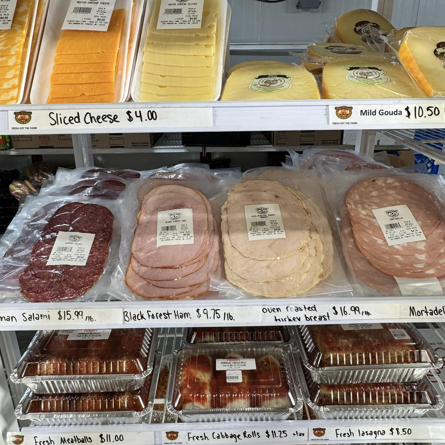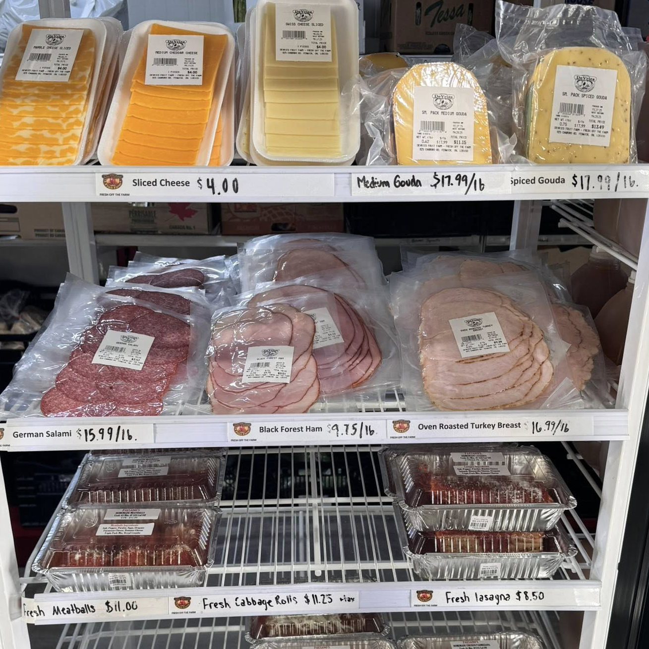 Designed for convenience without compromising quality, the DeVries Fruit Farm deli area makes it easy to put together satisfying meals. From sandwich meats and fresh cuts to lasagna, pot pies, turkey dinners, and other ready‑to‑heat favourites — plus milk, cheese, yogurt, butter, and pantry staples — you’ll find everything you need in one stop.